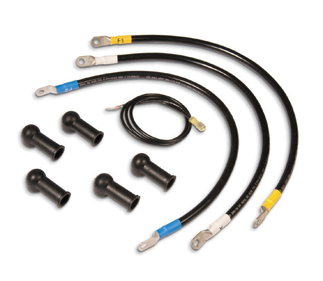 Need longer cables? Order Kit #2302282. Includes two 67" 2GA cables with 5/16" ring terminals on each end, one 72" 2GA cable with 5/16" ring terminals on each end, one 36" 10GA motor ground wire with 1/4" piggy back terminal & 5/16" ring terminal, one T connector and five rubber terminal boots.